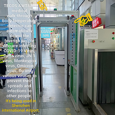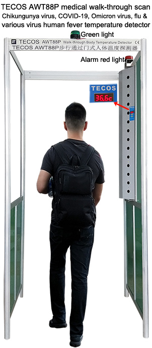 TECOS AWT88P walk-through medical automatic scan Chikungunya virus, COVID-19 virus, Omicron virus, Dengue fever virus, flu and various virus human fever body temperature detector