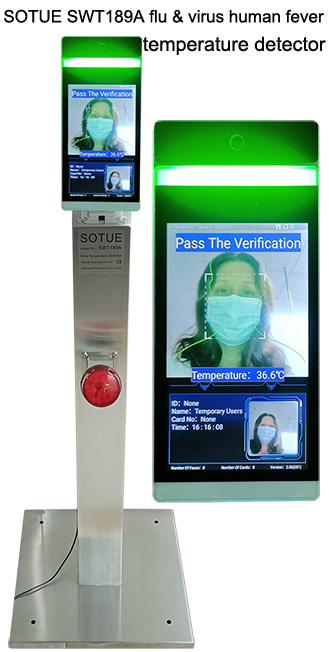 SOTUE SWT189A body temperature detector (AI medical recognition face body fever thermometer) can automatically detect body temperatures of all patients with fever such as detecting fever temperatures of COVID-19 virus patients, Delta virus patients, Omicron virus patients, SARS & Monkeypox virus patients, Ebola & JN.1 virus patients, MERS virus patients, H7N9 bird flu patients, Chikungunya virus (CHIKV) patients, Dengue Fever patients, Malaria virus patients, H3N2 flu patients, H1N1 flu patients and other various virus patients. It can also detect normal human body temperatures, it can use this timely and effective manner to prevent spread & infection of flu and virus to people. SWT189A detector can detect and find a fever patient who is caused by any virus or flu.